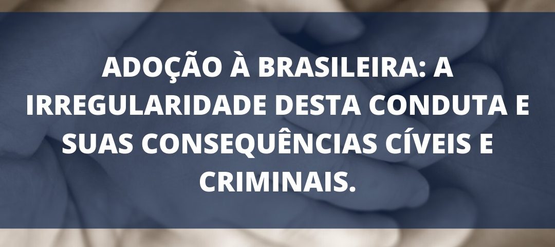 A adoção à brasileira é a prática ilícita de registrar o filho de outra pessoa como se fosse seu, geralmente com a finalidade de burlar o procedimento regular de adoção. Esta conduta é ilegal e caracteriza crime previsto do Código Penal, sendo que os Tribunais estão cada vez mais rígidos na sua fiscalização.